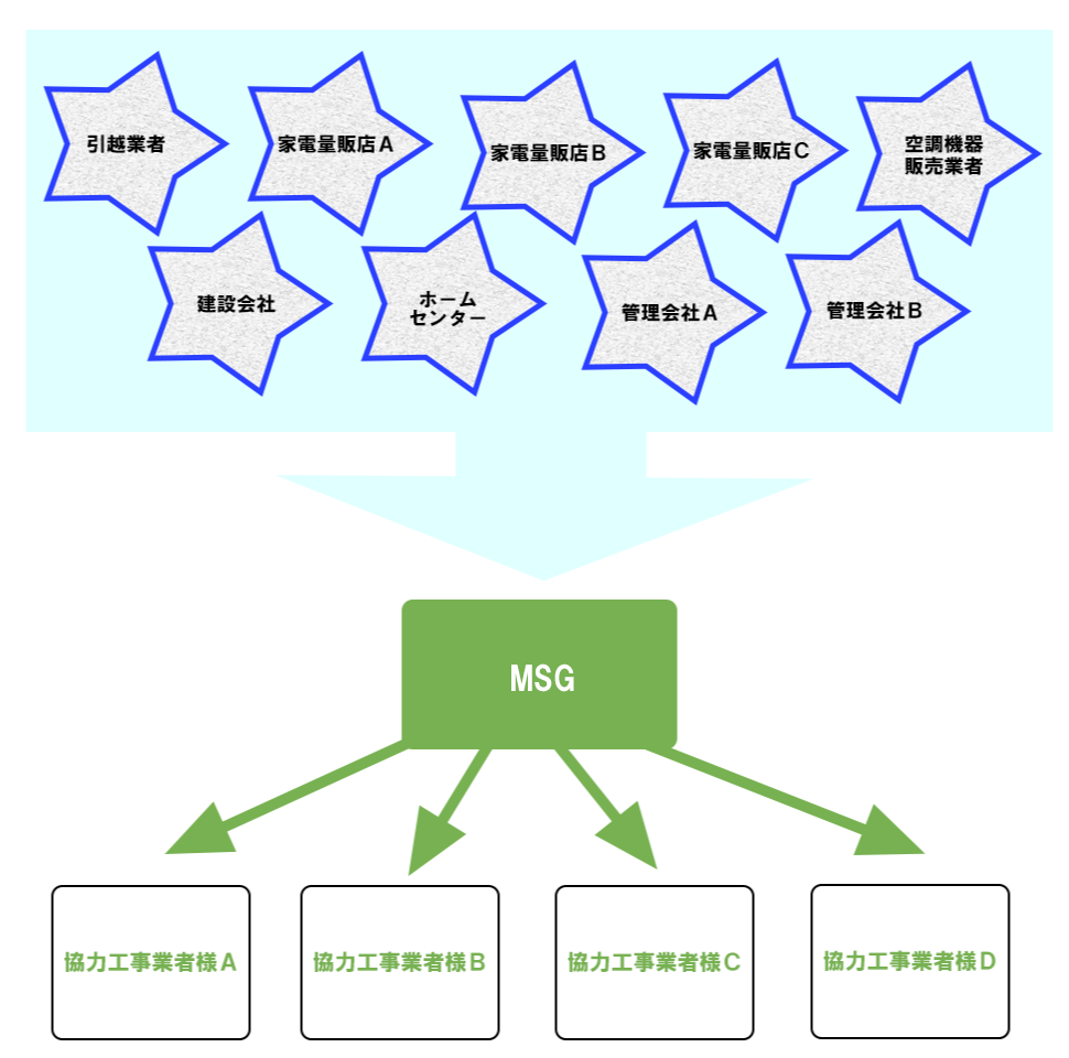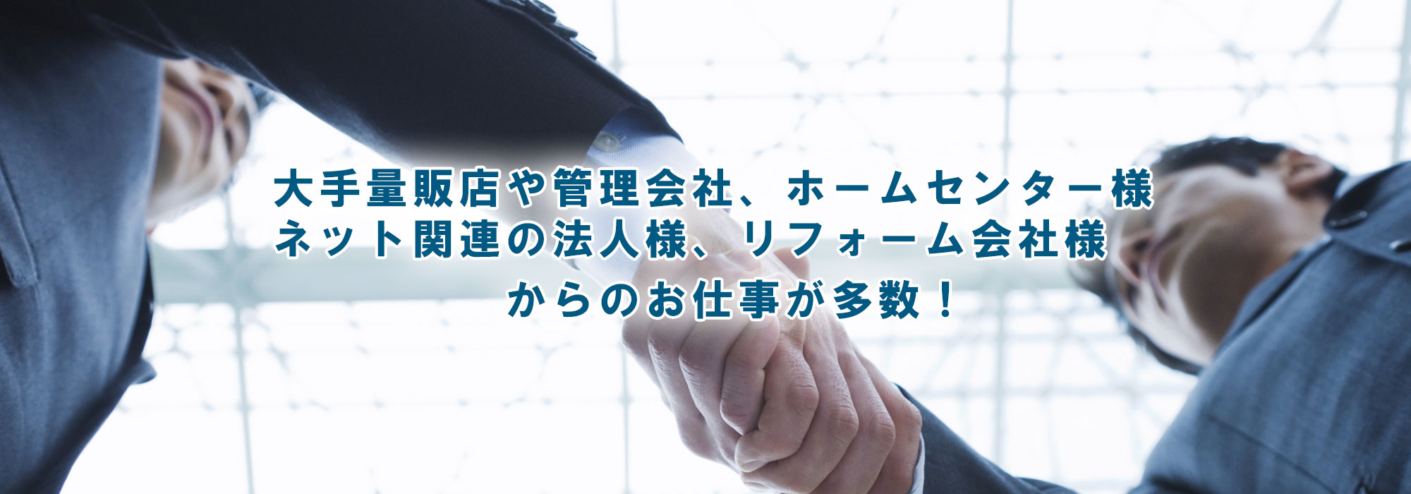 全国に協力業者様が多数在籍しているので、営業、交渉は当社にお任せください。協力な営業力で工事業者様が満足いただくお仕事をご紹介できます。